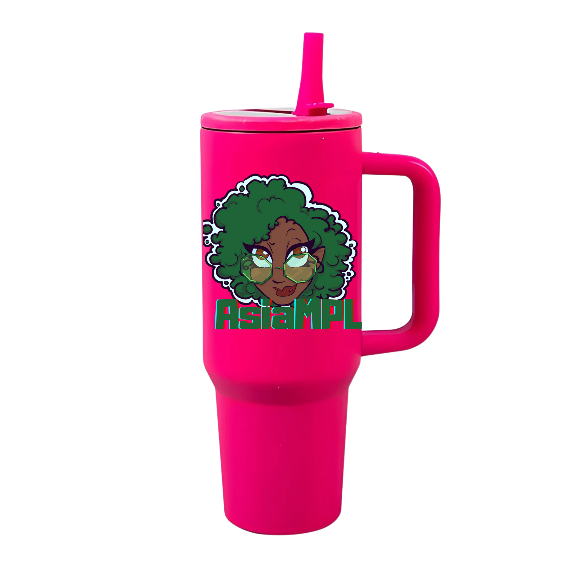 32 oz Stainless steel Tumbler. Flip down straw. Vacuum seal.